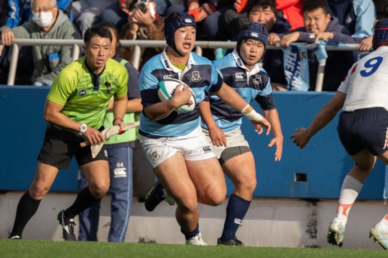 しかし、後半は本校の持ち味である粘り強さが発揮されます。敵陣で戦う時間が長くなり、終始、優位に試合をコントロールし主導権を握りました。後半20分過ぎには相手のミスから待望の初トライをもぎ取り、意地を見せました。結果は10-40で惜敗し、初の花園出場はあと一歩及びませんでしたが、選手たちは最後まで諦めることなく、伝統校相手に勇敢に戦い抜きました。