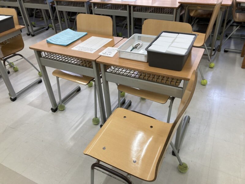 受験生には座席番号カードとティッシュ、保護者には試験当日のご案内をそれぞれお渡しします。