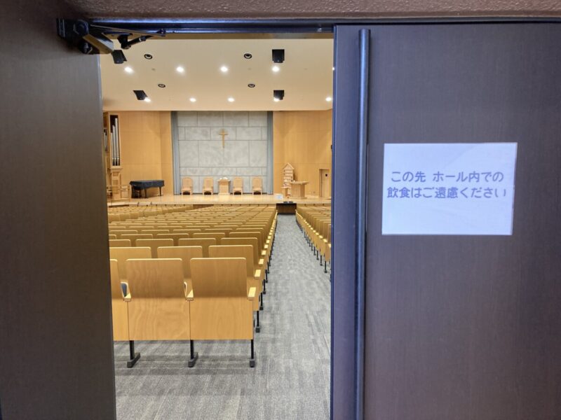 礼拝堂とは別に高校校舎1階(普通教室)にも控室があります。こちらは飲食可能ですが、ゴミは各自でお持ち帰りください。